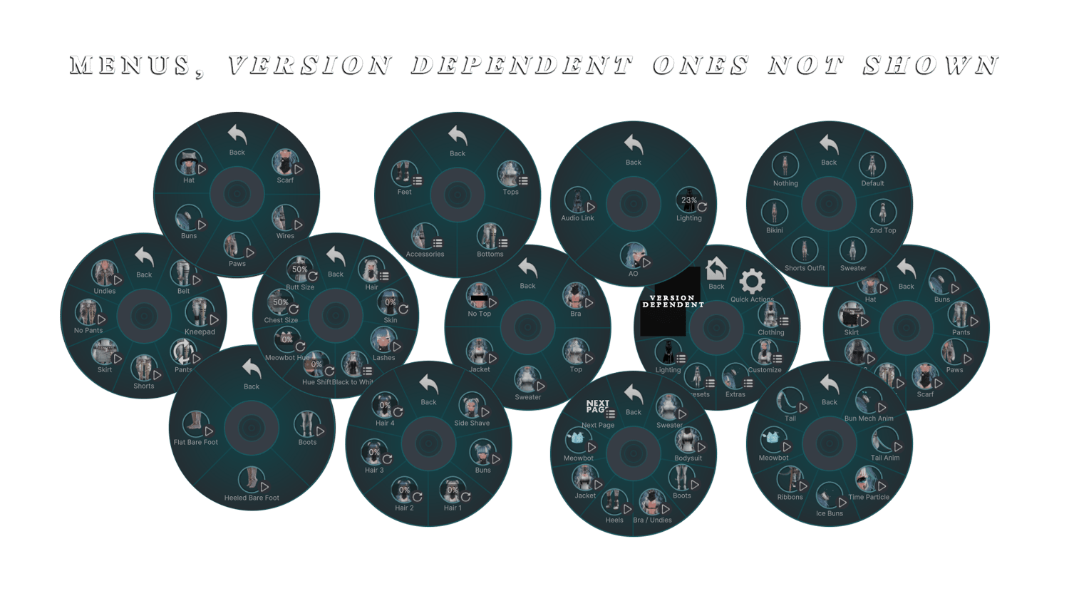 - body settings: chest & butt size radials, skin tone radial & inhuman blue / frosted version.