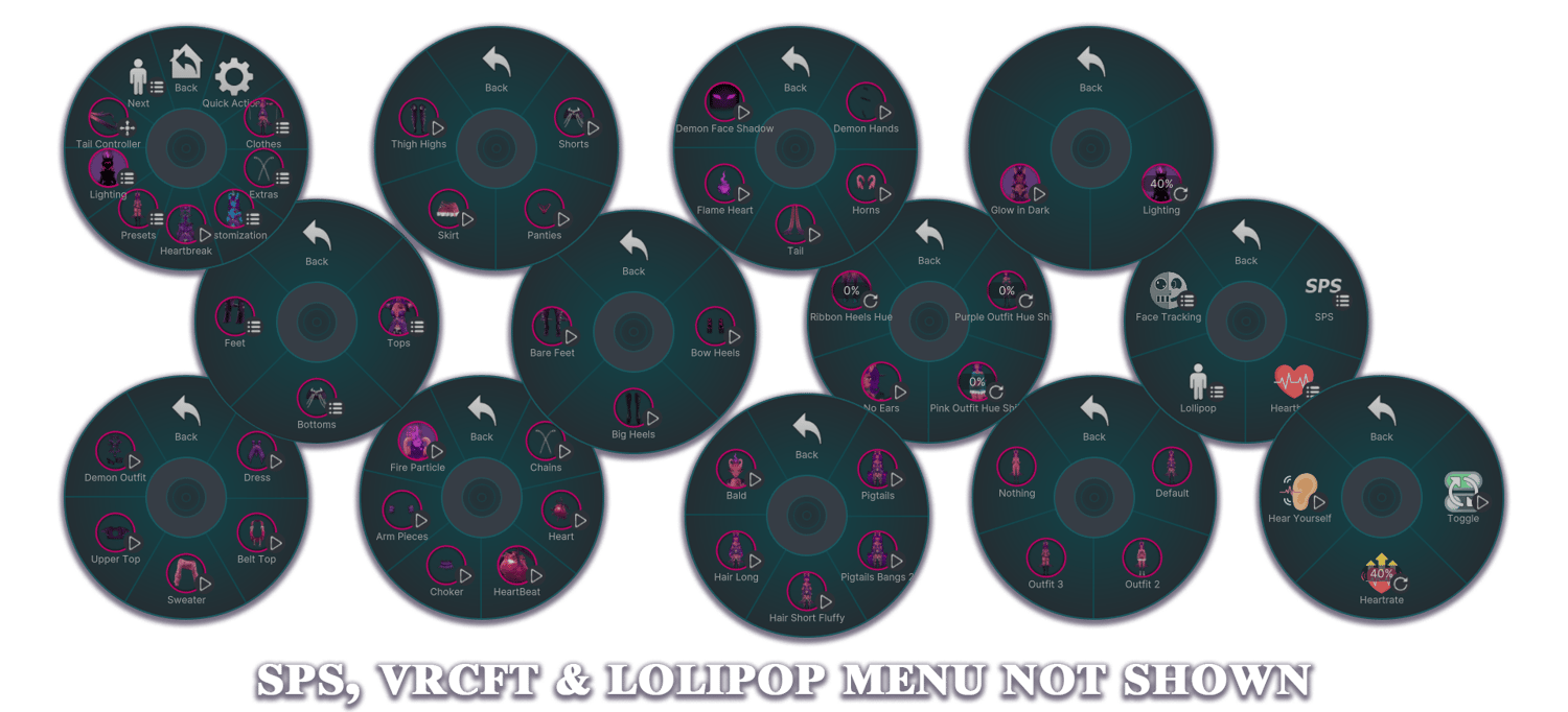 - four presets: default, skirt/belt top/sweater, demonic outfit & nothing.