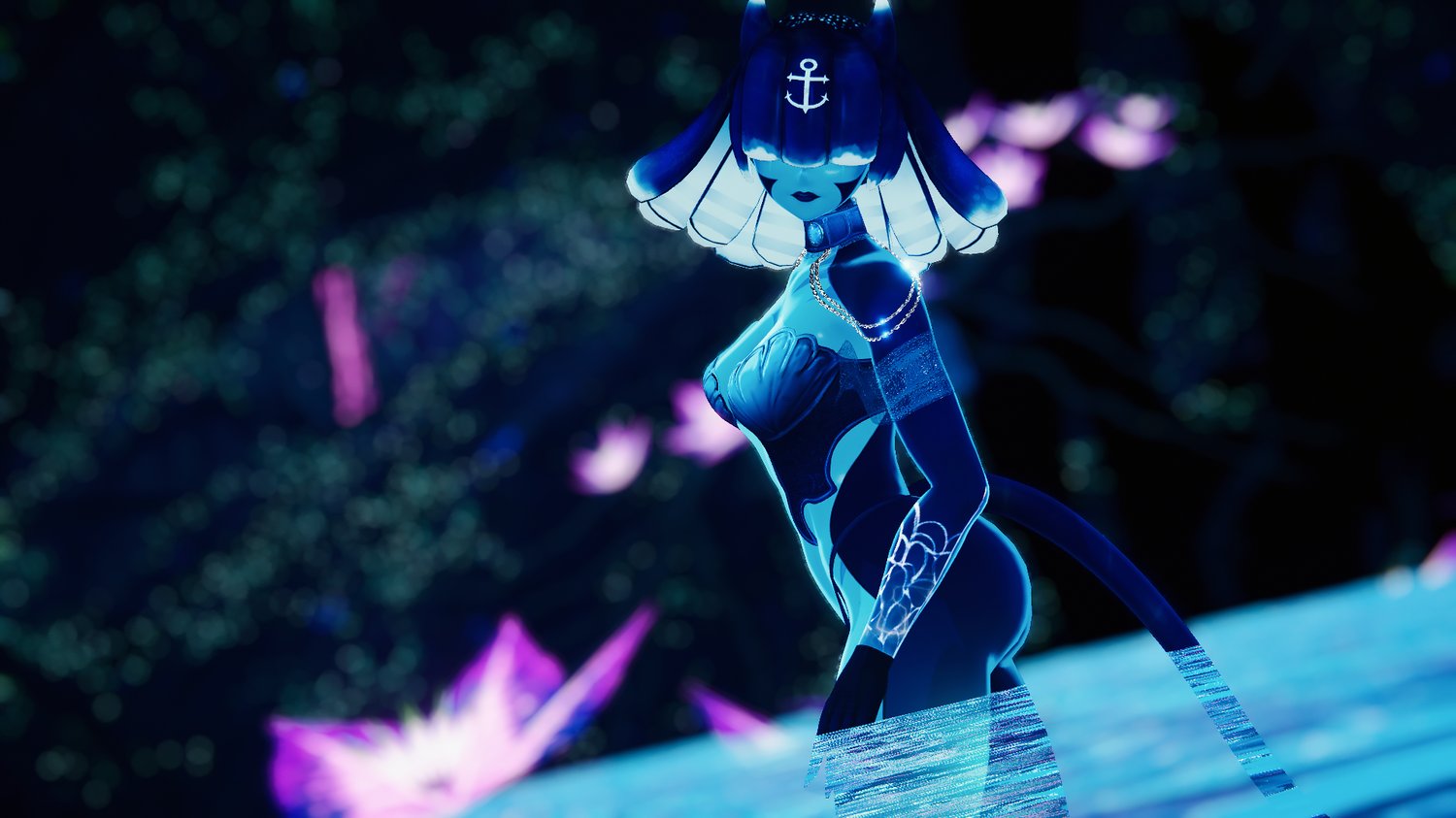 - six preset outfits: default, dress, bikini/net, alternative, water waves & nothing.