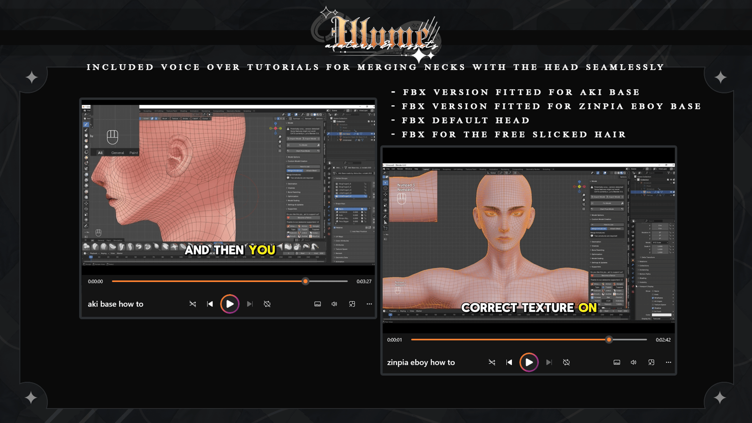 - Includes FBXs for a version fitted to the Aki Base, Zinpia's Eboy VRbase, a default not fitted to any body & the hair shown ( works with any gradient hair tex ) as a freebie.
